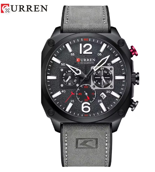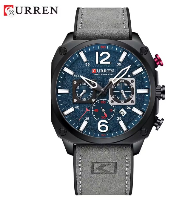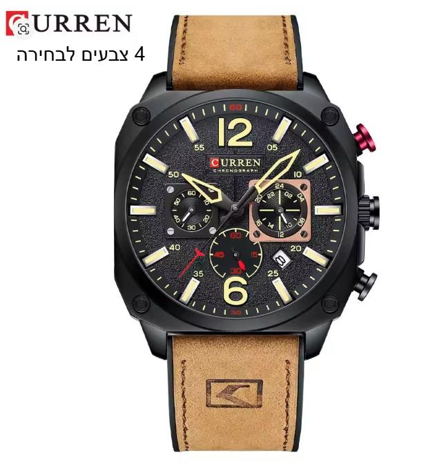 שעון כרונוגרף אוטומטי לגברים רצועת עור בעיצוב מיוחד ומרשים, עם תאריך שניות דקות ושעות, 4 צבעים לבחירה