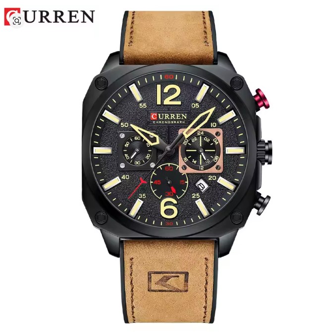 CURREN Brand Luxury Men Brown Quartz Wristwatches for Male Luminous Chronograph Dial Leather Clock Casual Sports Watch