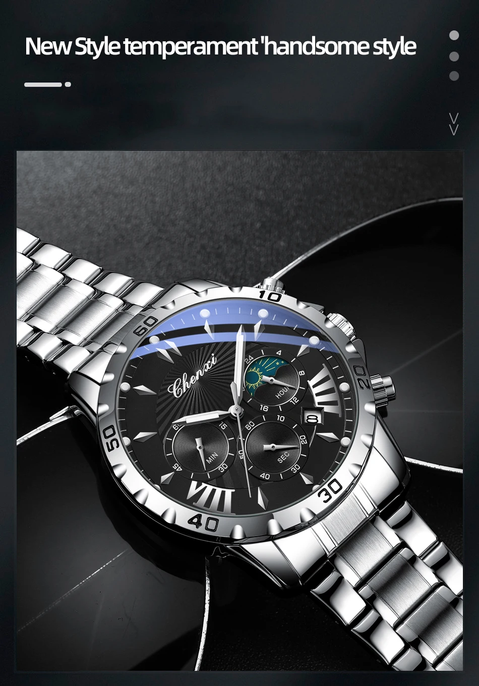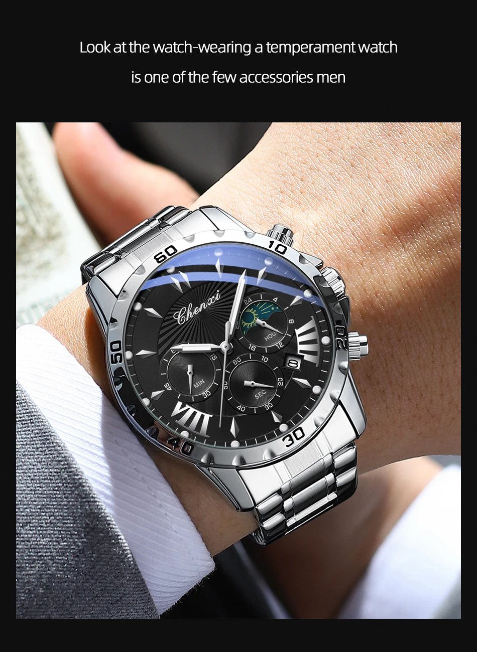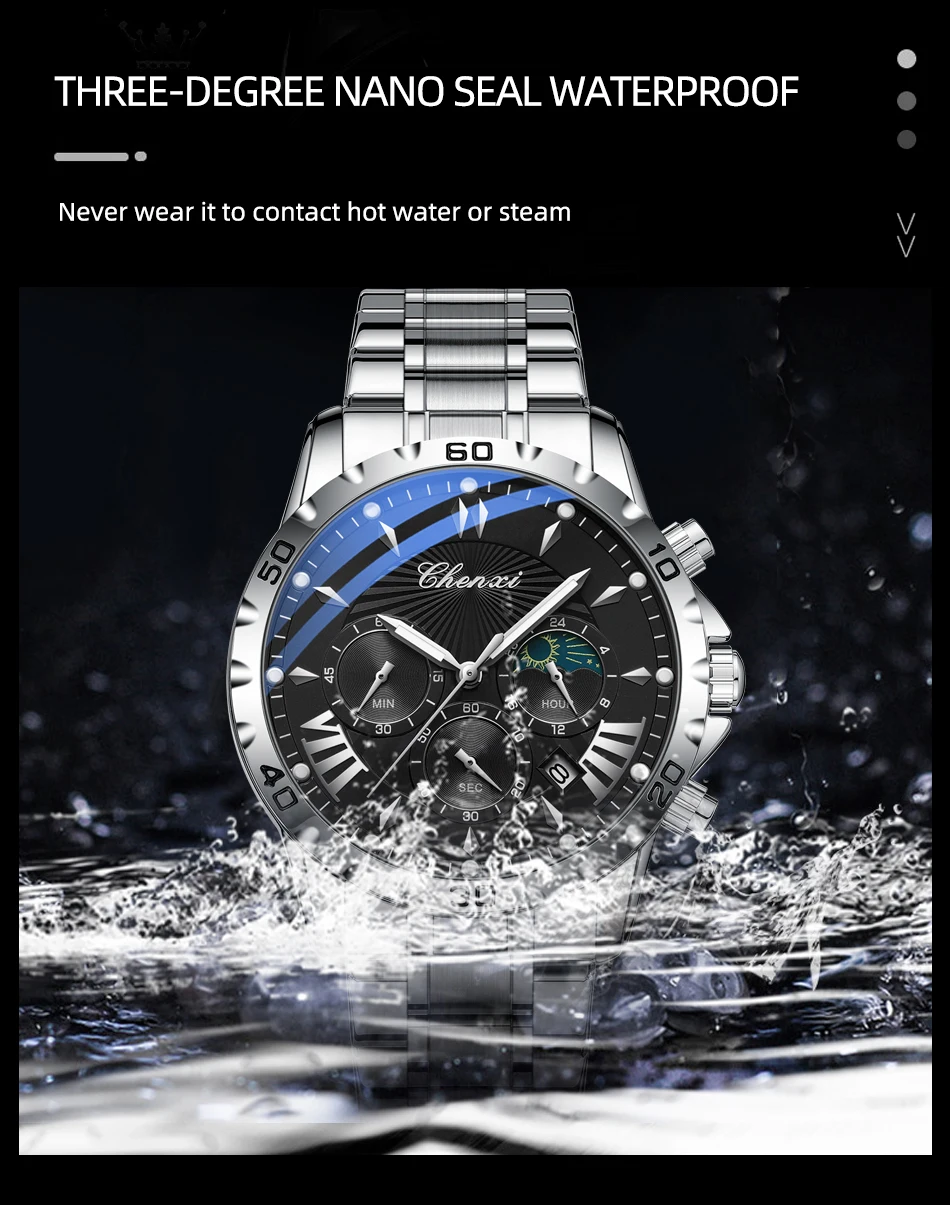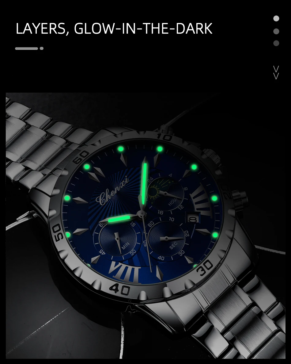 שעון צלילה כונוגרפי לגברים בעיצב של ירח/שמש ב-8 צבעים לבחירה מחוגים זוהרים