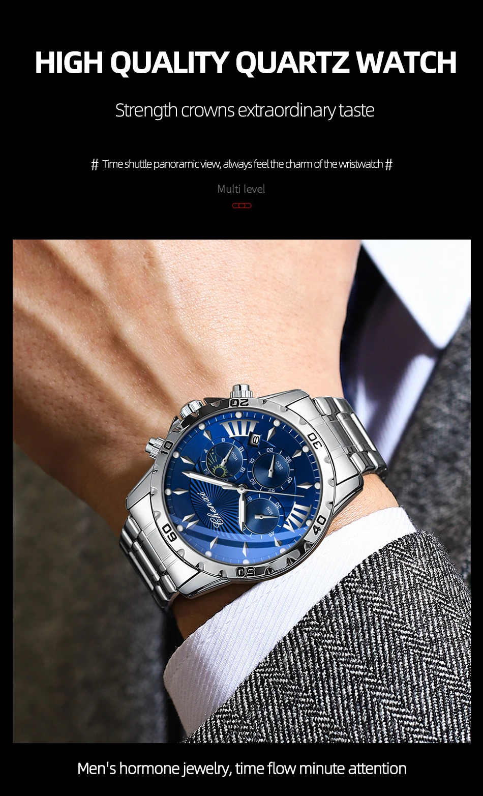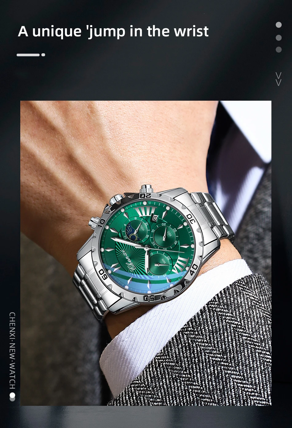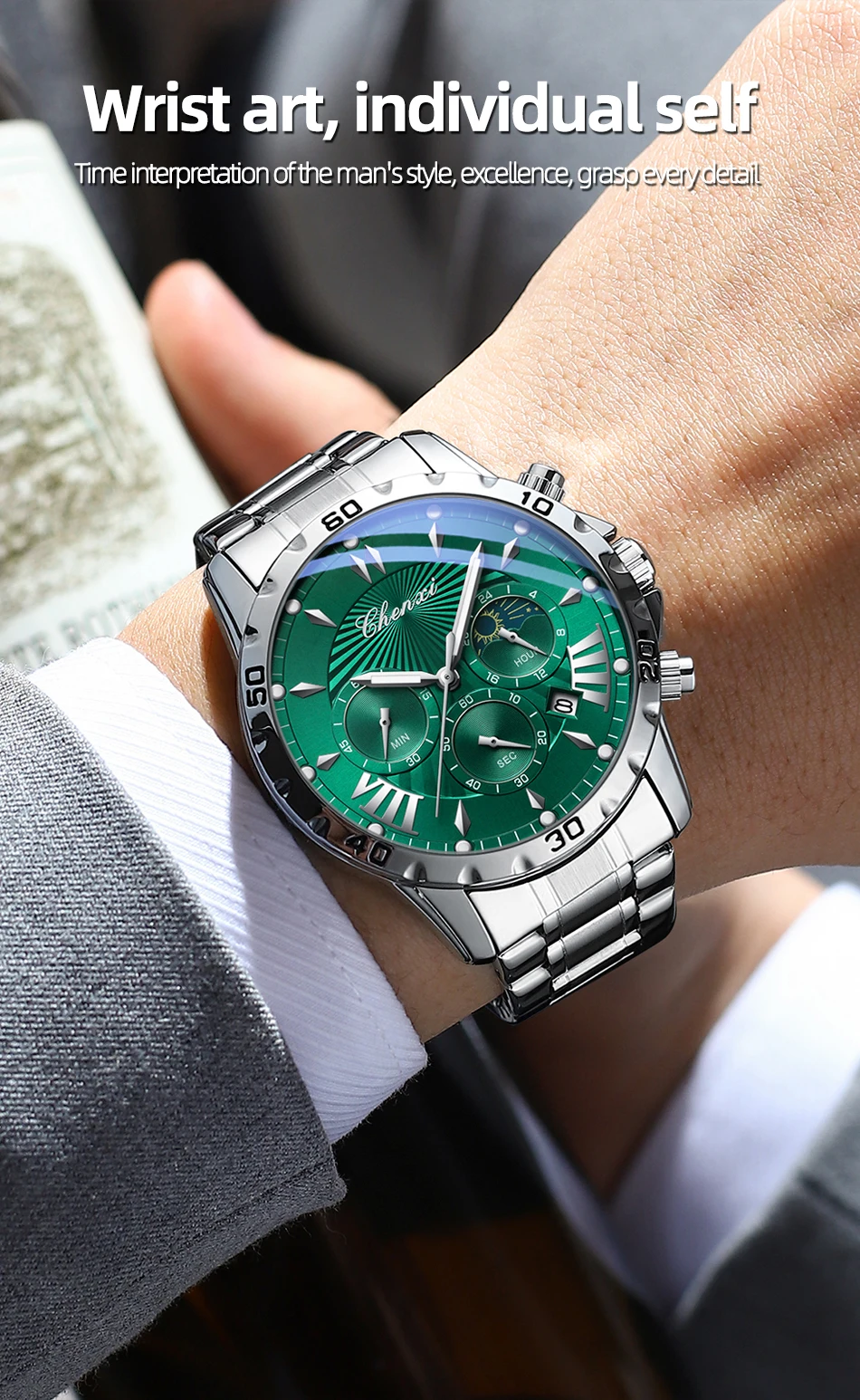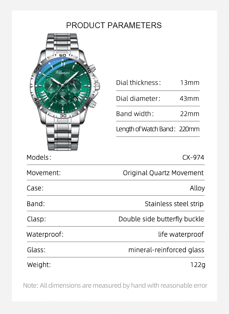 שעון צלילה כונוגרפי לגברים בעיצב של ירח/שמש ב-8 צבעים לבחירה מחוגים זוהרים